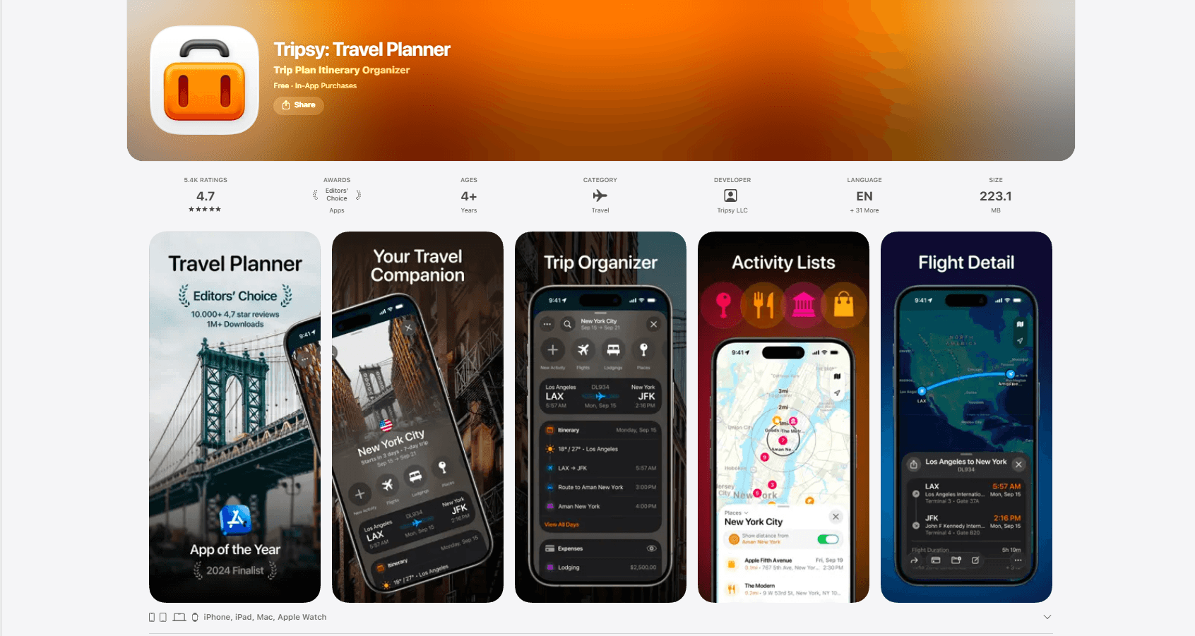 🏆 Best for iOS users: Tripsy — One-time $25 purchase, looks gorgeous, works offline, and offers a detailed view for managing your travel plans.